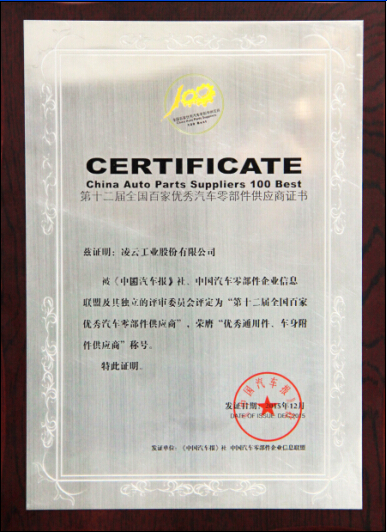全国百佳优秀汽车零部件供应商